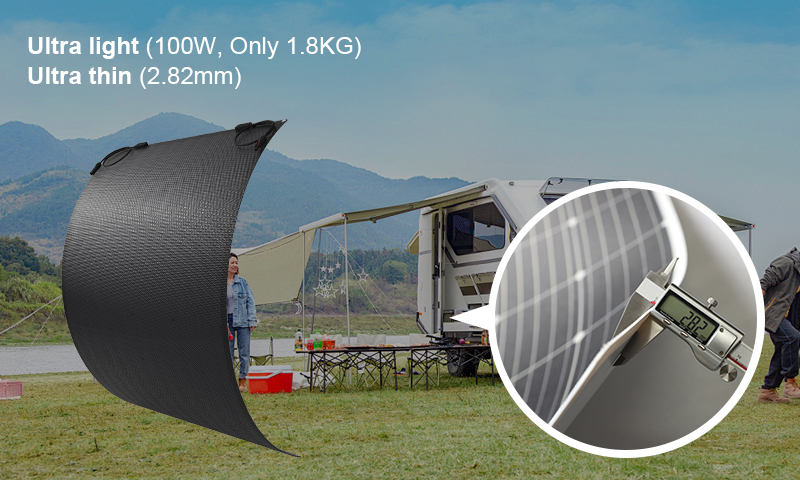 The L Series adopts an ultra-thin and lightweight design, with a thickness of only 2.8mm, and a 100W panel weighing only 1.8kg, greatly reducing transportation and installation difficulty. It is especially suitable for RVs, lightweight roofs, and portable off-grid systems. Not only does it save space for end customers, but the lightweight design also reduces labor and transportation costs for distributors, while enhancing installation flexibility, fitting any surface, reducing wind resistance, and preventing micro-cracks in the solar cells, ensuring stable, continuous, and efficient power output.