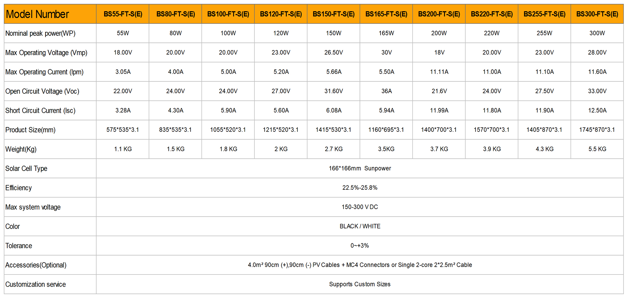 Uses advanced polymer substrates, offering high flexibility and bending capability, up to 30% maximum, while also providing vibration and shock resistance.This makes it perfect for any curved, uneven, or irregular application surfaces.It protects the internal solar cells while allowing easy packing, transport, storage, and rapid deployment.